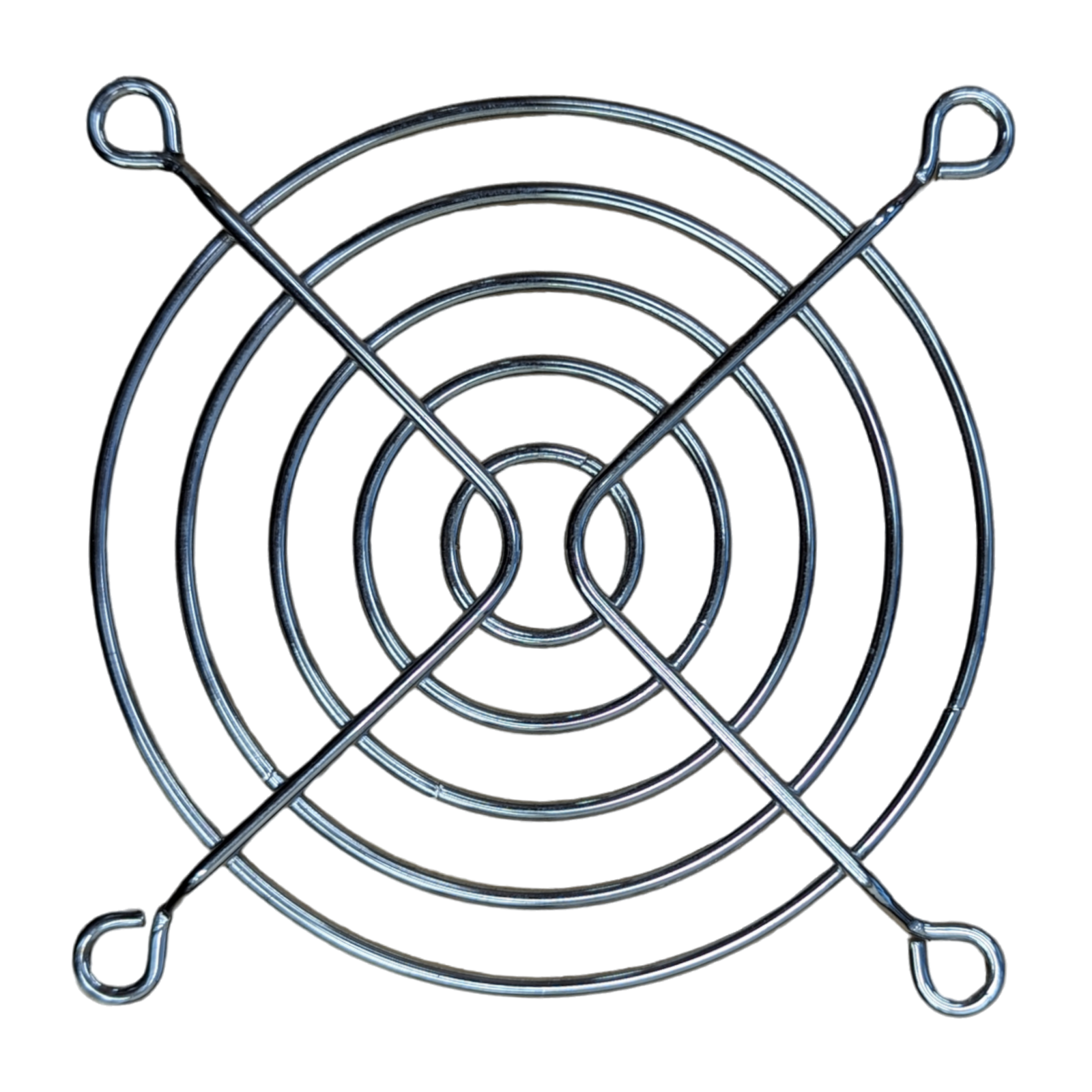 80x80mm nickel plated steel wire fan guard for standard 80mm cooling fans. Protective cover for electronics cooling in LED drivers, power supplies and control enclosures.